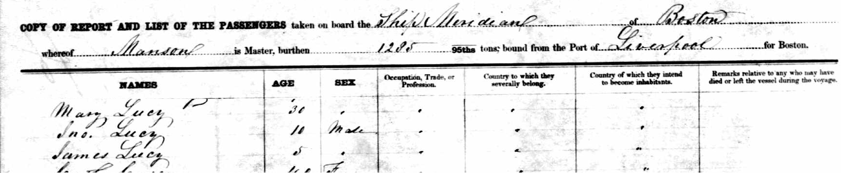 Mary, John and James, coming to America aboard the Meridian. They arrived on 12 Nov, 1853.