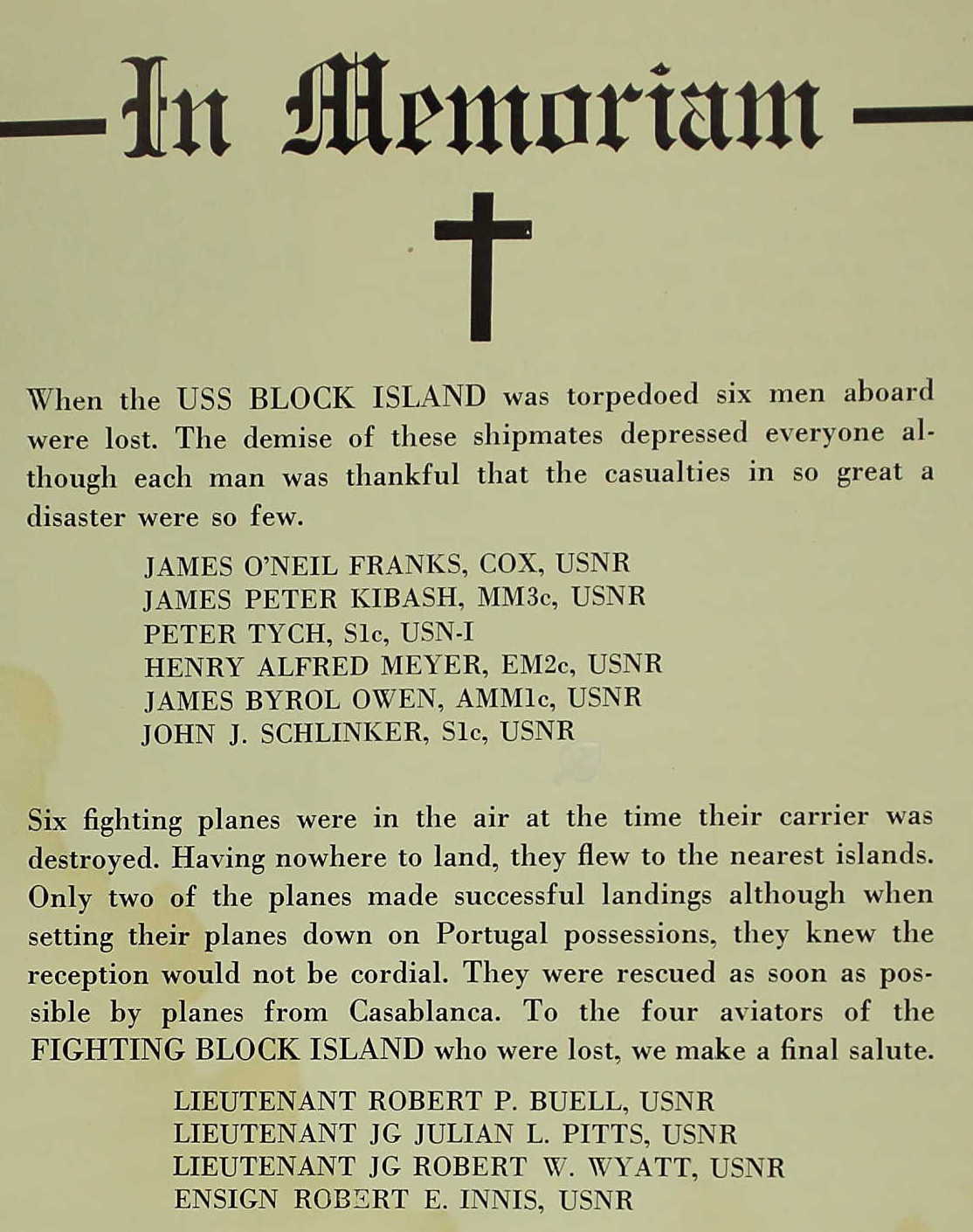 The USS Block Island, part of a hunter-killer group of escort carriers providing cover for convoys moving across the mid-Atlantic, is north-west of the Canary Islands on 29 May 1944. On board were 957 crew, including my grandfathers first cousin John J Schlenker. At 20:13, German U-boat U549 slipped through the screen and fired four torpedoes, three hit the Block Island. John and five other men were killed in the attack.