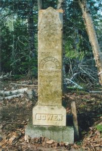 The Bowen family of Washington County Maine made the ultimate sacrifice in the Civil War. Father William and three of his sons signed up to fight for the Union and none returned home [more here]. Back in 2001 or so, cousin Jeanne O’Shea had given me loads of information about William and family and because I lived near where William died, she had hoped I could find his headstone.