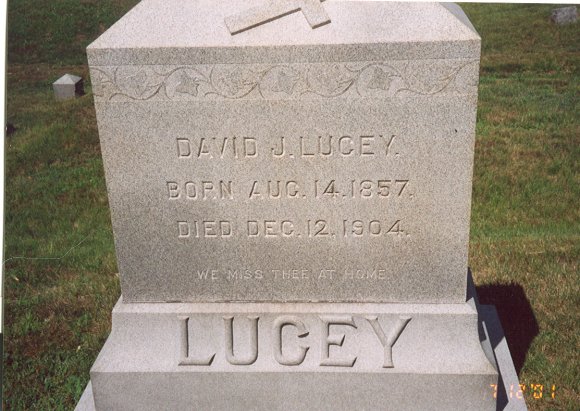 David Joseph Lucey (my 2nd great-grand uncle, brother of James) was just 47 when he died in Dec 1904, leaving his wife Jean (Brodie) and daughter Lucille.