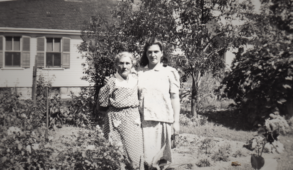 This picture is of my grandmother, Justine (Fusco) Frost with her husbands’ grandmother, Minnie Smith. The picture was taken in Minnie’s garden at 51 Hammond St. in Bridgewater, MA, probably in the summer of 1941 when Justine was “with child”. I plan on doing a more in-depth post on Justine later, but I just came across this picture and had to share it.
