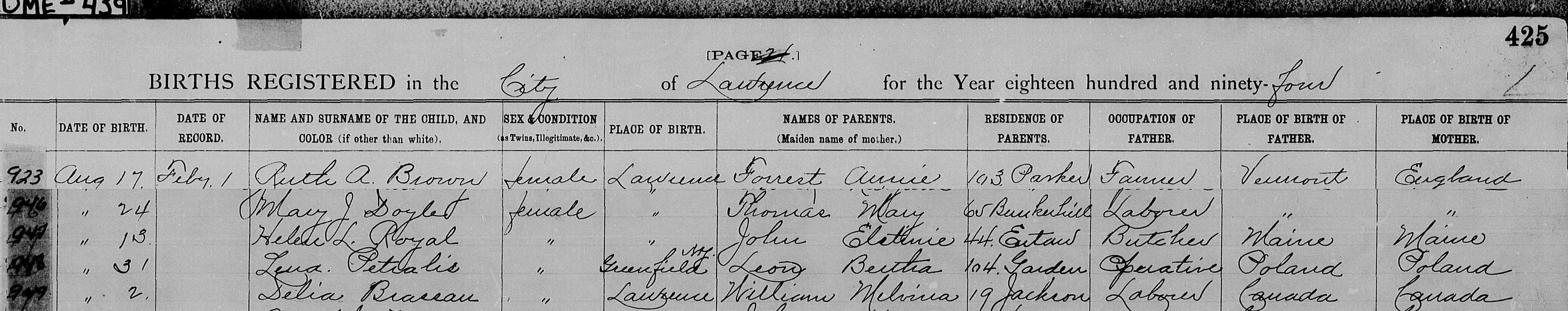 This cemetery plot was owned by Jean’s father, Peter Brodie and he, along with his wife Mary, son Robert, daughter Jean, Jean and David’s children Arthur and Lucille are all buried here. This death notice appeared in the Haverhill Evening Gazette on 12 Dec 1904.