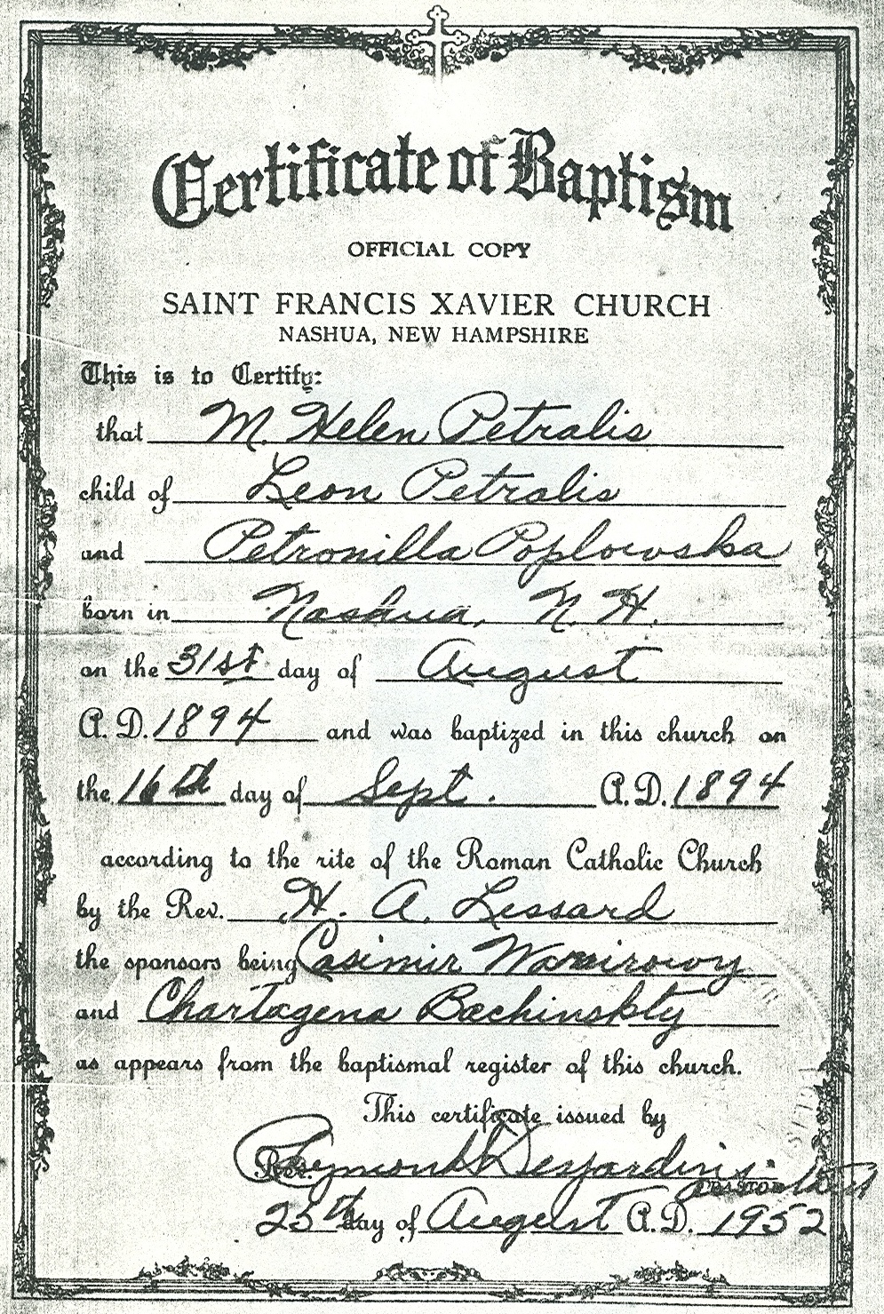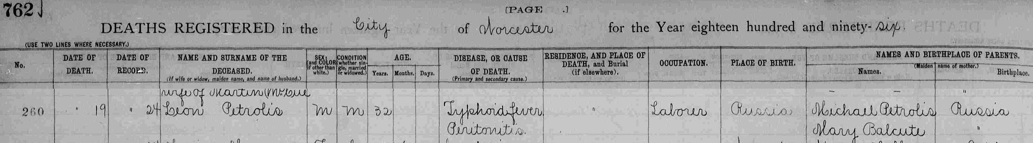 My 2nd great-grandfather Leon Petralis (or Petrolis) is still a bit of a mystery. I have multiple documents on two events that he was involved with, his marriage and the birth of his daughter (my great-grandmother). Beyond that I have a family story about how he died, a possible death record and a potential passenger list entry from when he came to America, but those are speculative and naturally, the names aren’t all the same. I’m guessing that most people with Eastern European ancestry run into the near constant changing of names. I have so far documented 10 different names for Leon’s wife, Petrusia.